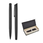 1111-RT Siyah-Siyah Klips Metal Roller & Tükenmez Kalem Seti