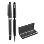 1218-RT Siyah-Silver Metal Roller & Tükenmez Kalem Seti
