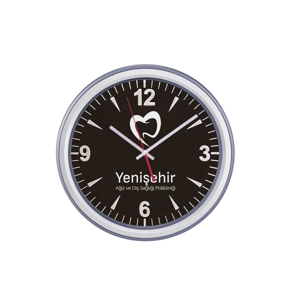 ERİŞ321 SİYAH-GÜMÜŞ PLASTİK KASA DUVAR SAATİ (350 MM)